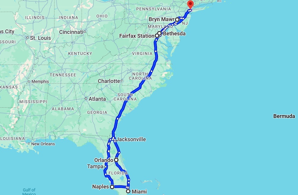 NEW YORK – VIRGINIA – SOUTH CAROLINA – FLORIDA – NEW YORK
